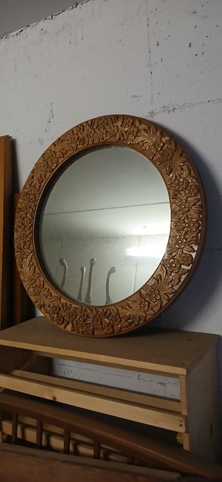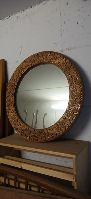 Bellissima specchiera antica con cornice in legno finemente intagliata a mano. - Perfetta per aggiungere un tocco di eleganza a qualsiasi ambiente. - Cornice rotonda con dettagli floreali. - Specchio in vetro di buona qualità. Solo ritiro di persona