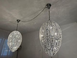 Bellissima coppia di lampadari a sospensione, dallo stile elegante e raffinato. - Perfetti per illuminare con gusto qualsiasi ambiente. - Design ricercato e dettagli scintillanti.