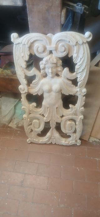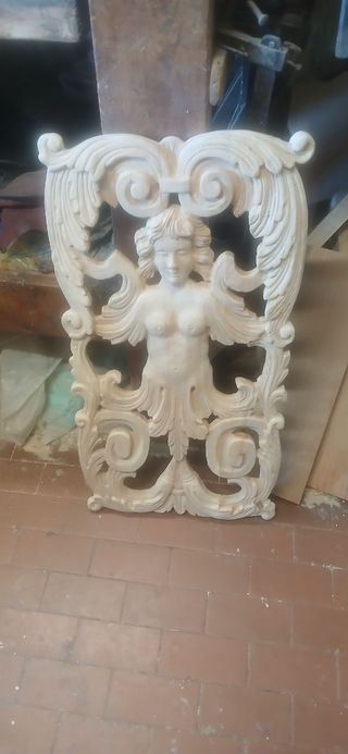 Splendida scultura in legno, un'opera d'arte finemente intagliata a mano. - Raffigura una figura femminile con ali. - Dettagli elaborati e decorativi. - Perfetta per arredare con un tocco artistico.