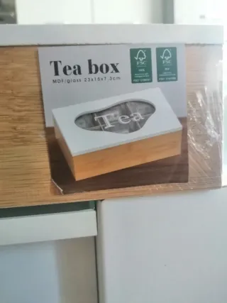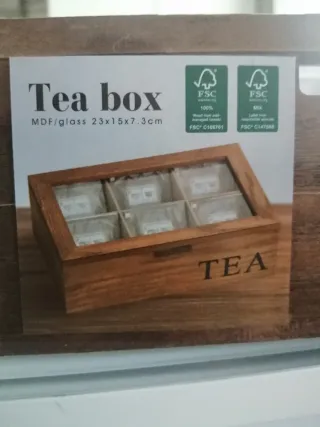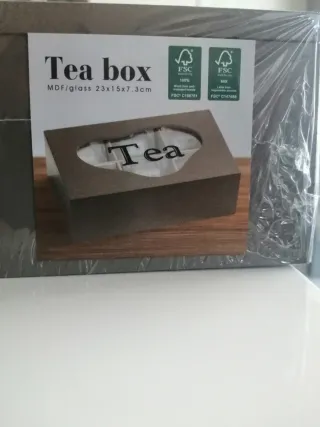 Elegante scatola per organizzare le tue bustine di tè. Realizzata in legno e vetro, presenta un design pratico e raffinato. - Materiale: MDF/vetro - Dimensioni: 23x15x7.3cm - Certificazione FSC per la gestione forestale responsabile.