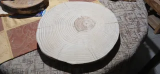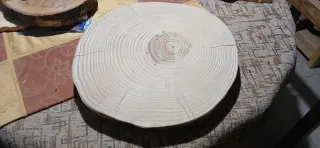 Fetta di tronco in legno, perfetta per decorazioni o progetti fai-da-te. - Diametro generoso. - Superficie liscia e pronta per essere personalizzata. - Bordo con corteccia naturale.