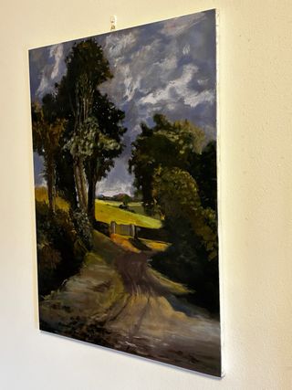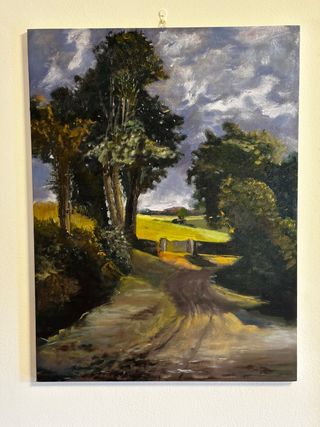 Dipinto ad olio su tela 60 x 80. Riproduzione del quadro “ Il campo di grano “ di John Constable realizzato nel 1826. Finitura con vernice trasparente naturale. Telaio in legno.