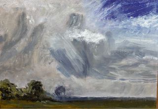 . Dipinto ad olio su pannello in legno 56 x 42. Dal quadro “ Studio di un cielo nuvoloso “ di John Constable realizzato nel 1825 - Tecnica: Olio su pannello ligneo. - Soggetto: Paesaggio con cielo tempestoso