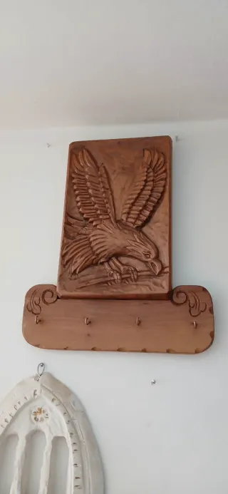 Bellissimo portachiavi in legno con un'aquila intagliata a mano. Un pezzo unico per decorare la tua casa. - Design dettagliato dell'aquila. - Base con ganci per chiavi.