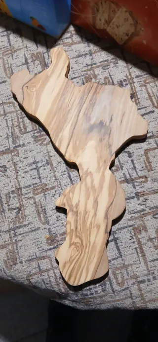 Un bellissimo tagliere artigianale a forma di Calabria, realizzato in legno di ulivo. Un pezzo unico che porta un tocco di autenticità italiana nella tua cucina. - Forma distintiva della regione Calabria. - Venature naturali del legno di ulivo. Su richiesta effettuiamo la regione si richiede