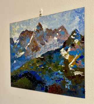 Riproduzione di un quadro di Pio Solero raffigurante le Dolomiti. Realizzato a spatola dimensioni 50 x 40 cm.
