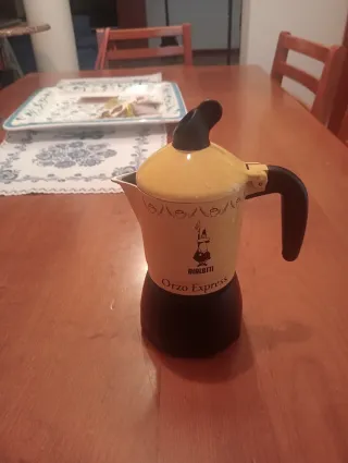 Caffettiera Bialetti Orzo Express, perfetta per preparare un ottimo caffè d'orzo. - Design iconico Bialetti. - Colore giallo vivace con base nera. - Manico e pomello in plastica resistente.