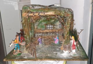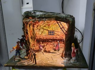 Vendo grotta presepe artigianale, tutta fatta a mano,completa di personaggi e kit illuminazione perfettamente funzionante. Tutto come da foto. Altezza 36 Larghezza 54 Profondità 38