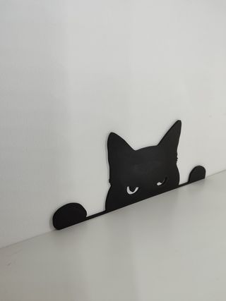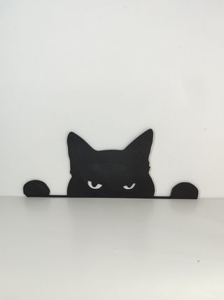 Decorazione a forma di gatto nero, perfetta per aggiungere un tocco di originalità. - Design stilizzato. - Silhouette di un gatto che sbircia. - Dimensioni circa 25x10 cm spessore circa 3 mm. Colore Nero Materiale Plastica