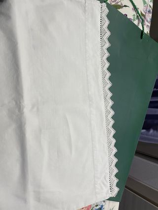 Balza per lenzuolo con un elegante bordo all'uncinetto bianco con sfumature ross cm. 210x70 - Bordo lavorato a mano. - Finitura a zig-zag.