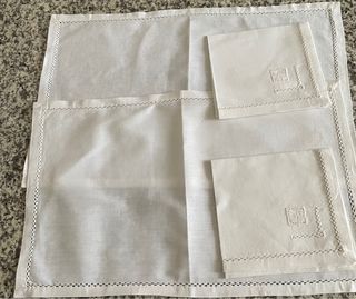 Elegante set di due tovagliette americane cm. 30x45 in lino, perfette per arricchire la tavola con due tovaglioli cm. 30x30 - Design raffinato con ricamo. - Bordi rifiniti con lavorazione a giorno.