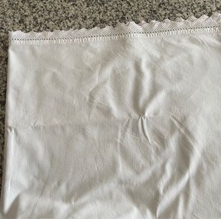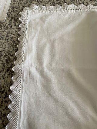 Federa per guanciale in cotone con dettagli in pizzo realizzato all’uncinetto con bordo finale di colore rosa - Bordi rifiniti con un delicato pizzo. - Inserti in pizzo con sfumature rosa.