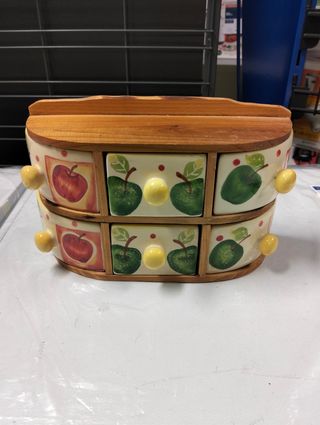 Porta spezie in legno con cassetti in ceramica
