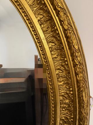 Elegante specchio da parete con una cornice in ottone finemente lavorata. - Cornice con dettagli decorativi. - Finitura dorata lucida.