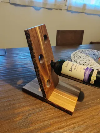 Elegante porta bottiglie realizzato in legno con finitura naturale. - Design unico con corte irregolare. - Spazio per una bottiglia.