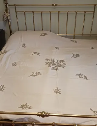 Elegante copriletto in lino con ricami floreali. - ricamato interamente a mano. - Motivo floreale ricamato. - Tessuto in lino di alta qualità. Prezzo trattabile