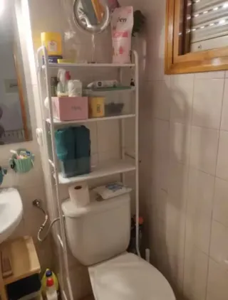 Lo Scaffale da Bagno su WC 3 Ripiani Bianco è la soluzione ideale per sfruttare lo spazio verticale del bagno e mantenere tutto in ordine. Con struttura metallica in acciaio da 16 mm, resistente all'acqua e alla polvere, offre 3 altezze con ripiani ampi perfetti per asciugamani, carta igienica o articoli da toeletta. Include porta rotolo e 3 ganci laterali per una maggiore comodità. Le sue 4 gambe regolabili permettono di livellarlo senza fissaggio a parete, ideale per qualsiasi superficie. 📏 Dimensioni: Larghezza 50 cm × Profondità 18 cm × Altezza 150 cm. 🚚 Spedizioni tramite Wallapop o contrassegno (5 €). 📍 Pinto (mattina) / Getafe (pomeriggio). REF10950071