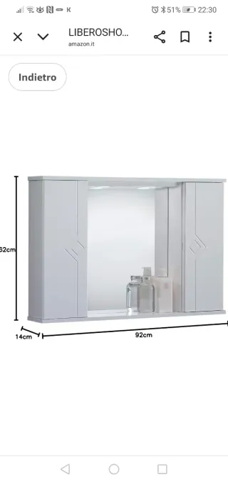Armadio libreria da bagno con design moderno e funzionale. Per maggiori informazioni invia un messaggio WhatsApp al numero 657219622. Dimensioni: Larghezza 62 cm, Altezza 1,64 m, Profondità 25 cm.