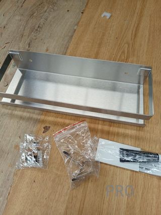 Accessorio da bagno in acciaio massiccio di alta qualità. Design a griglia. Finitura argentata. Misure 40 cm di lunghezza×9,5 cm di profondità×10,5 cm di altezza.