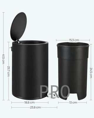 Cestino bagno SONGMICS, 3 litri, cestino per rifiuti, con coperchio, chiusura morbida, con pedale, cestino interno in plastica estraibile, per bagno, ufficio, acciaio, nero. Cestino bagno SONGMICS, in metallo e colore nero. Ha una capacità di 3 litri. È elegante e compatto, ideale per qualsiasi bagno. - Pedale per aprire e chiudere facilmente. - Design cilindrico moderno. - Finitura impeccabile.