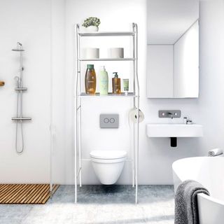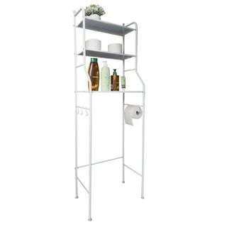 Scaffale in metallo da posizionare sopra lo sciacquone, ideale per organizzare il tuo bagno. - Design a 3 ripiani. - Colore bianco.