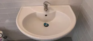 Lavandino bagno con colonna e miscelatore