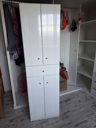 Armadio bagno stretto e alto, con un design moderno e funzionale. Per maggiori informazioni scrivi al numero 657219622 - Porta con specchio. - Cassetti per lo stoccaggio. - Porta inferiore con maniglia.