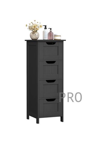 VASAGLE Armadio da Bagno, Armadio da Appoggio, con 4 Cassetti, 30 x 30 x 82 cm, per Bagno, Soggiorno, Sala da Pranzo, Cucina, Stile Moderno, Nero Tinta LHC040B01