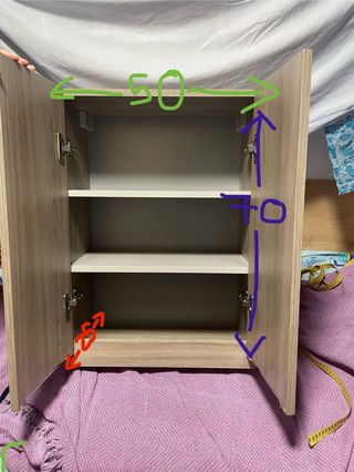 Mobile di stoccaggio con un design moderno e funzionale. - Dimensioni approssimative: 50 cm di larghezza, 70 cm di altezza e 25 di profondità - Due ripiani interni per organizzare i tuoi effetti personali. - Porte ribaltabili con maniglie discrete. - Acquistato per metterlo nel bagno, ma per mancanza di spazio, alla fine non è stato nemmeno usato - Prezzo negoziabile