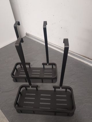 Set di tre organizer per bagno, perfetti per mantenere tutto in ordine senza bisogno di fare fori. NUOVO! Senza uso! - Design moderno e funzionale. - Realizzati in metallo resistente. - Colore nero elegante. - Include sistema di montaggio senza trapano. - Istruzioni