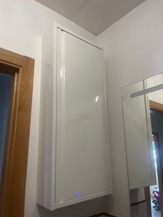 Vendo armadio bagno ENHET IKEA, struttura bianca con porta verde-grigio chiaro. Misure 69 × 17 × 75 cm. Ottimo stato, poco utilizzato. Ha una mensola leggermente colorata in una zona poco visibile (vedi foto) e un piccolo urto sul retro sinistro, totalmente invisibile una volta montato. Include cerniere e due mensole. Prodotto febbraio 2023, con garanzia IKEA di 10 anni in corso. Prezzo consigliato nuovo: 60 € (a Pamplona con spedizione ≈ 79 €).