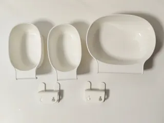Set di 3 cesti per la conservazione e due appendiabiti IKEA ÖNSKLIG. SENZA USO. Perfetto per organizzare diversi spazi. - Design moderno e funzionale. - Facili da pulire. - Ideali per bagno, cucina o camera da letto.