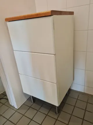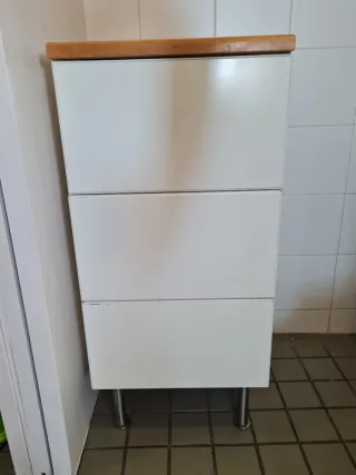 Cajonera di Ikea con un design moderno e funzionale. Perfetta per organizzare i tuoi articoli. Misure: 87 cm altezza x 41,5 cm larghezza x 39 cm profondità. Difetti di vernice dovuti all'uso visibili nelle foto. - Struttura bianca. - Piano in legno. - Gambe metalliche. Comoda calaixera per bagno, camera da letto, cucina.