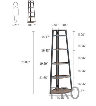 Scaffale ad angolo Tribesigns alto 70 pollici, scaffale ad angolo rustico a 5 livelli, scaffale ad angolo industriale, scaffale a scaletta, supporto per piante per soggiorno, cucina, ufficio a casa (marrone)