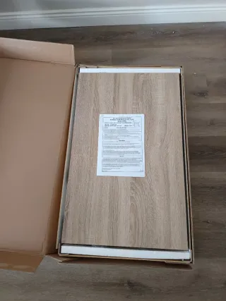 Scrivania porta PC nuova, con rotelle per facilitare lo spostamento. Il design è moderno e si adatta a diversi ambienti. - Colore beige e marrone. - Realizzata in legno e plastica.