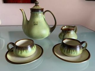 Elegante set per caffè Mancioli Rusticana. anni ‘70. - set costituito da: caffettiera, lattiera e due tazzine con piattini