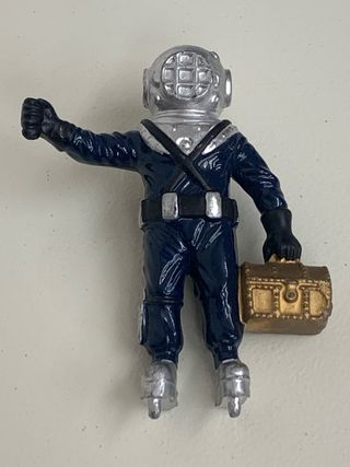 Statuetta decorativa a forma di palombaro, ideale per acquari. Con fori per fare fuoriuscire l’aria con effetto bollicine, nel casco. - Dettagli curati. - Design unico.