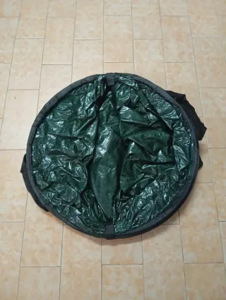 Pratico sacco per la raccolta delle foglie, dotato di una molla interna che lo mantiene aperto. - Colore verde scuro. - Materiale resistente e impermeabile. - Design a soffietto per un facile stoccaggio. - Dotato di velcro per facilitarne la chiusura. - Tessuto in plastica intrecciata, per aumentare la robustezza. - Il sacco non si rompe se viene bucato da un ramo.