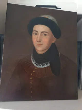 Ritratto a olio su tela attribuibile al pittore tedesco Schawabeda Johann Michael, pittore di corte della città di Ansbach. 1734-1817. Il dipinto già restaurato con relative foto misura 43.5 x 54 cm. Sul retro c'è la firma dell'autore.