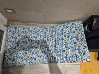 Materasso per lettino da campeggio con fantasia a cerchi. - Fantasia con cerchi blu e beige. - Tessuto resistente. - 120x60