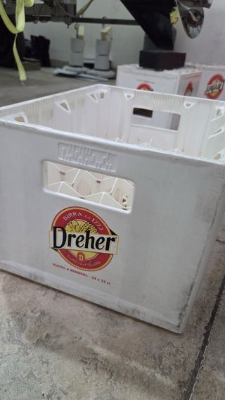 Cassetta in plastica per il trasporto di bottiglie di birra. - Logo Dreher ben visibile. - Design a griglia interna per contenere le bottiglie.
