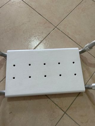 Sedile regolabile per vasca da bagno, modello AB-41. - Struttura in metallo e plastica. - Colore argento e bianco. - Design con fori per il drenaggio dell'acqua.