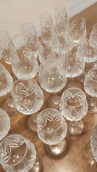 Elegante servizio di bicchieri in cristallo, completo di brocca coordinata. Ideale per ogni occasione. - Bicchieri dal design raffinato. - Brocca capiente e decorata. - Cristallo di alta qualità.