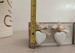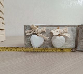 Delizioso portacandele in legno, perfetto come idea regalo. - Decorato con due cuori bianchi. - Nastrini in pizzo beige. - Design shabby chic. Coppia Porta candela Colore grigio Lunghezza 12 cm Altezza 7 cm 1 pezzo 2,2 2 pezzi 3,6 Applico sconto se acquisti più prodotti