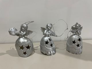 Set di tre angeli decorativi, perfetti per aggiungere un tocco magico al tuo albero di Natale. Ogni angelo è curato nei dettagli, con ali delicate e un design che ricorda un vestito a campana. - Decorazioni a forma di stella. - Ideali per creare un'atmosfera festiva.