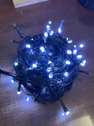 Catena luminosa con 100 LED di colore bianco freddo - Lunghezza totale: 100 led - Adatta per uso interno ed esterno (verificare IP rating se disponibile) - Cavo nero