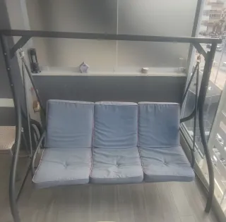 Dondolo da giardino a 3 posti, ideale per rilassarsi all'aperto. La struttura è convertibile in lettino. - Seduta e schienale imbottiti. - Telaio in metallo resistente.