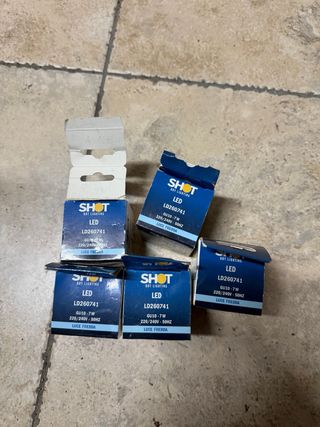 Set di 5 lampadine LED Shot Lighting. - Modello: LD260741 - Attacco: GU10 - Potenza: 7W - Tensione: 220/240V - 50Hz - Tipo di luce: Fredda