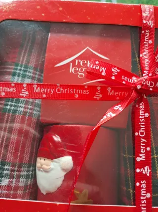 Bellissimo set di oggetti a tema natalizio, perfetti come idea regalo. - due Portacandele a forma di Babbo Natale in ceramica. - Set di due tazze con coperchio e decorazioni natalizie - Stella decorativa natalizia in confezione. Applico ulteriori sconti se acquisti più prodotti