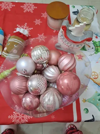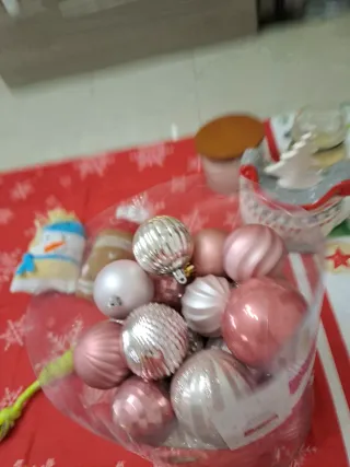 Set di palline decorative per l'albero di Natale. - Colore rosa e argento. - 40 in tutto - Nuove, mao usate, comprate in eccesso per il albero e avanzate - Comprese di laccetti per appenderle - Varie forme e misure
